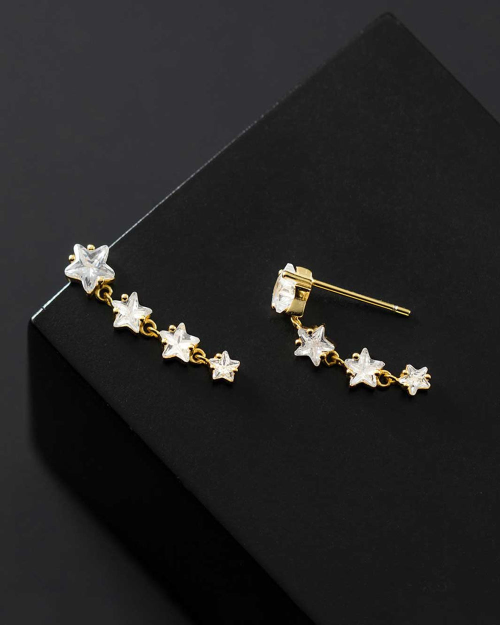 Be the talk of the night in these dazzling Diamond Stars Drop Earrings! Featuring 4 stunning 5-pointed stars made from sparkly cubic zirconia, they'll have you twinkling brighter than the stars in the sky! Wow 'em with your stellar style!
