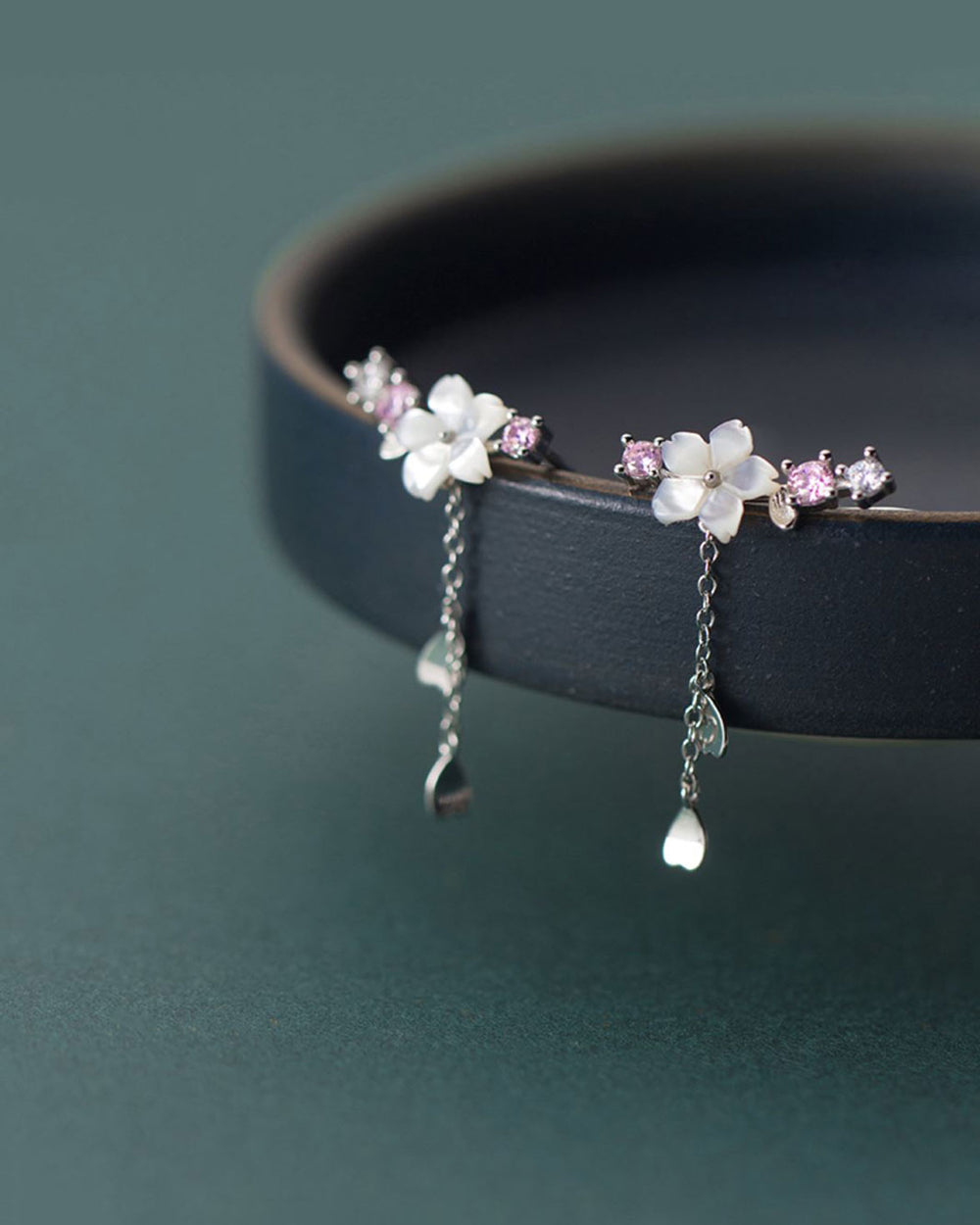 White Sakura Climber Earrings
