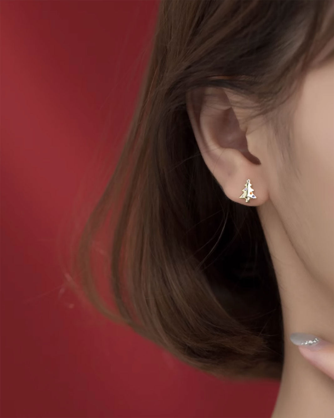 Dainty Christmas Tree Mismatch Dangle Earrings